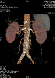 Une endoprothèse fenêtrée "sur mesure" pour éviter la rupture d'anévrisme de l'aorte abdominale: 1er cas d'implantation dans les Yvelines au CHP Parly2 - Le Chesnay.